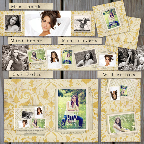 With the Jade 3 combo you will receive one 5x7 Folio template cover (for www.whcc.com), one wallet box template (for 50 prints for www.millers.com) and one Mini (accordion) front cover, back cover, front spread and back spread for www.wwhc.com.